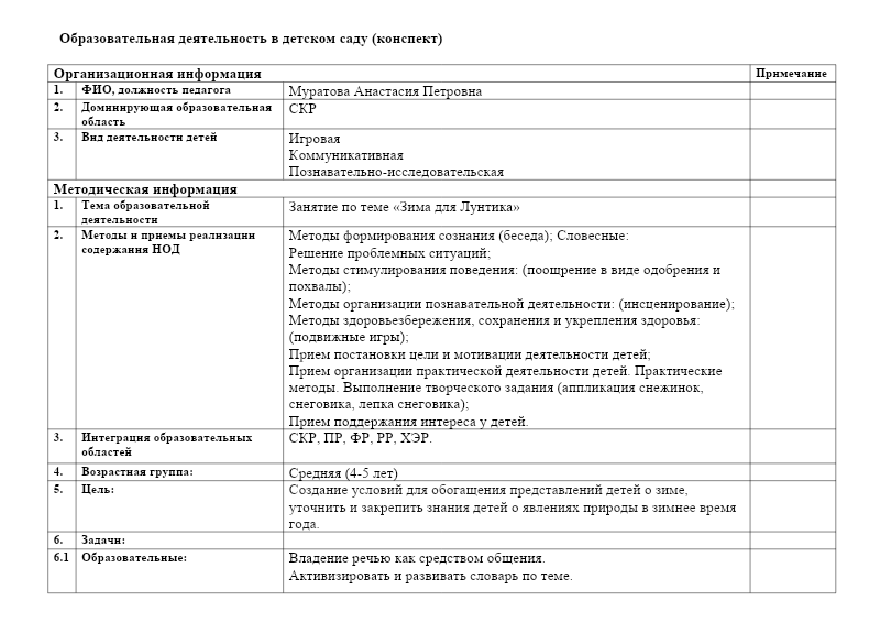 Конспект Занятия Зима Для Лунтика Муратова А.П.